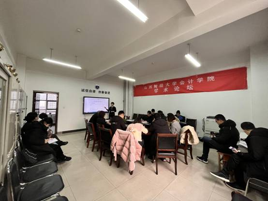 上官泽明老师汇报的内容围绕碳减排审计问题展开,主要包括:研究背景、国内外研究现状及发展趋势、研究思路以及主要研究内容等。上官老师汇报结束后,学院师生围绕“碳减排”的政策背景以及相关数据是否易获取等方面对报告内容进行了点评与讨论。