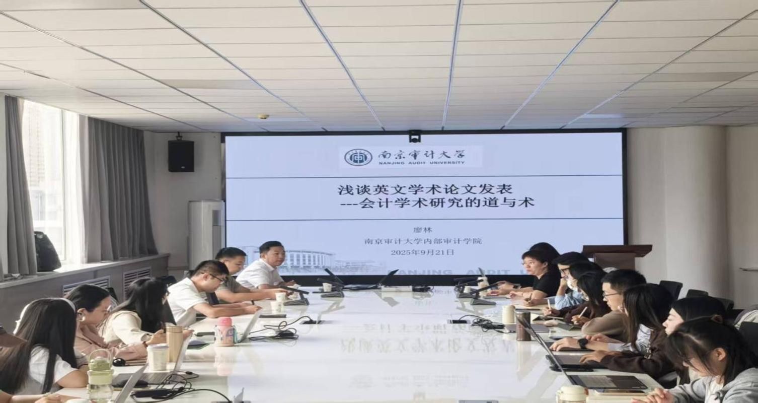 2025年9月21日,必发集团7790邀请南京审计大学内部审计学院廖林教授进行学术交流。廖林教授为学院科研骨干、博士研究生和硕士研究生作《浅谈英文学术论文发表——会计学术研究的道与术》为主题的学术报告,详细介绍学术研究的个人心得和SSCI英文投稿注意事项,并在会后就相关研究热点问题进行了讨论与交流。廖教授的报告增强了学院科研骨干对英文学术论文发表的理解和认识,有助于学院师生积累英文学术论文发表的经验和启示。