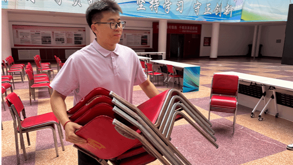 基础服务传递青春温度。清晨的校园里,身着统一标识的志愿者已就位。从校门口引导至赛场入口,他们以清晰指引疏解人流,用耐心解答回应咨询,单日服务参赛人员及观众超 500 人次,成为展现高校学子风貌的 “文明窗口”。后勤保障岗位上,志愿者们高效完成 200 余箱物资转运、多个赛场补给巡查,及时响应参赛人员需求,用细致服务传递温度。